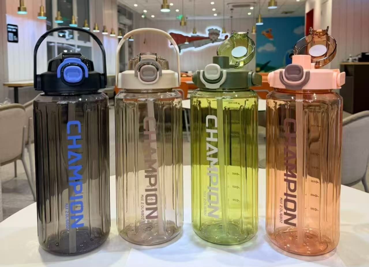 BOTOL MINUM PLASTIK JUMBO 2000 ML DENGAN TUTUP FLIP LOCK MOTIF GARIS VERTIKAL CHAMPION
