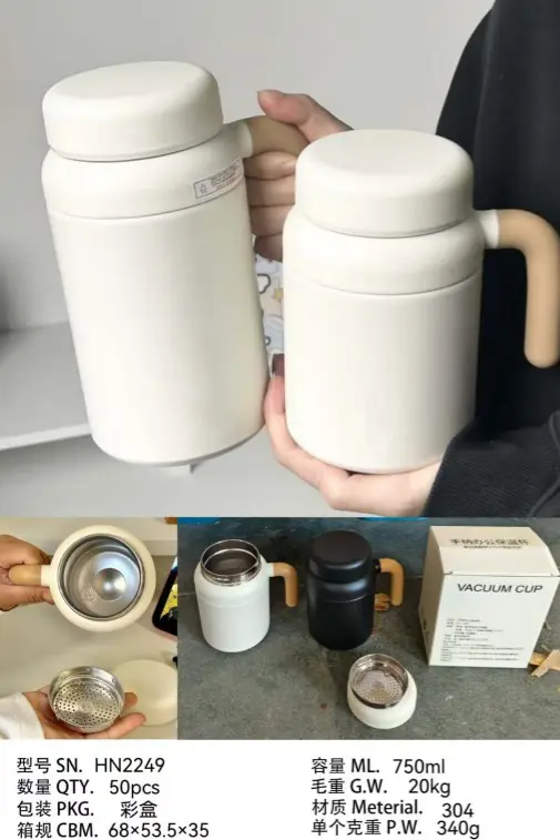 BOTOL MINUM TERMOS STAINLESS HANDLE MOTIF KAYU 750 ML MODEL SIKU PRAKTIS