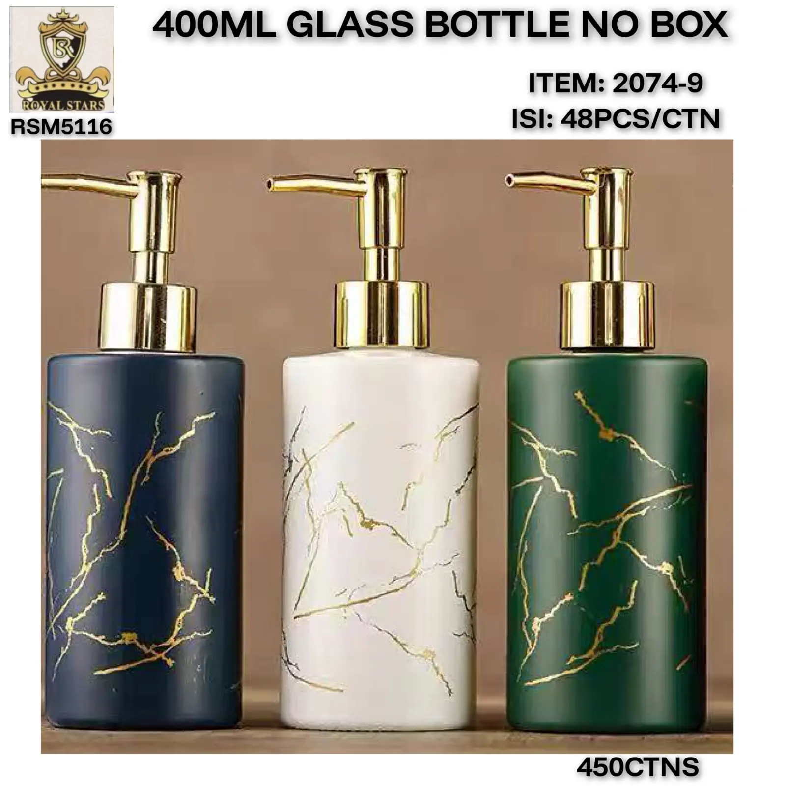 DISPENSER SABUN KACA MOTIF MARMER 400 ML DENGAN POMPA TUTUP KROM/BLACK KUALITAS TINGGI