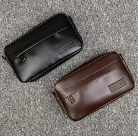 DOMPET POUCH TANGAN KULIT MONO TANPA TALI DENGAN RESLETING DEPAN DAN ATAS