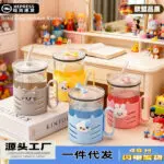 GELAS MINUM ANAK KACA DENGAN PEGANGAN PLASTIK BENTUK OVAL DAN SEDOTAN LEPAS MOTIF KARAKTER