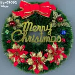 hiasan gantung pintu natal bentuk bulatan rumput dengan pita merry christmas 46 cm