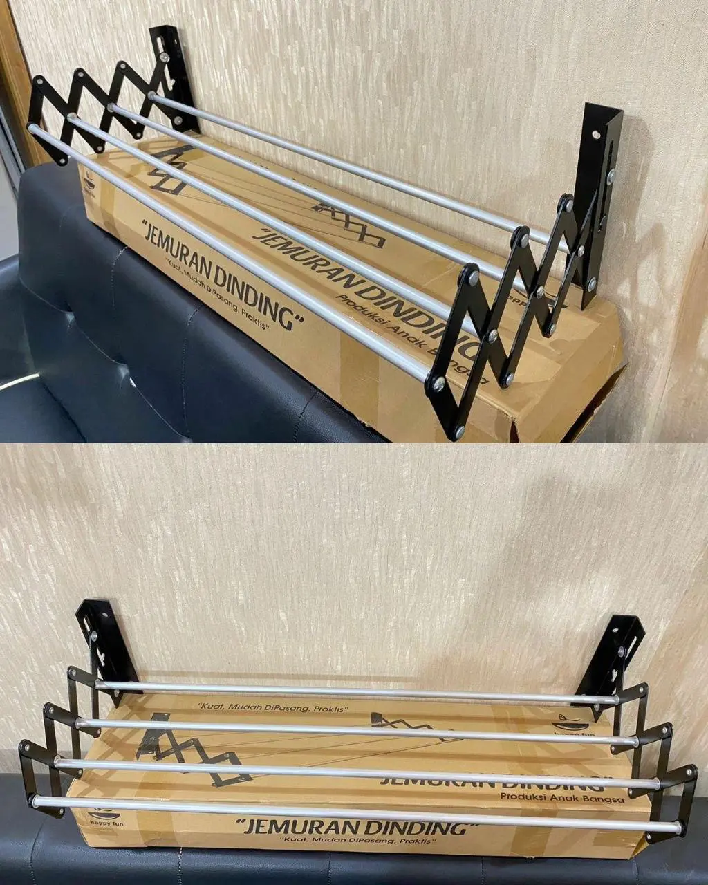 jemuran dinding tarik happy fun 4 pole sebaris, praktis dan hemat ruang