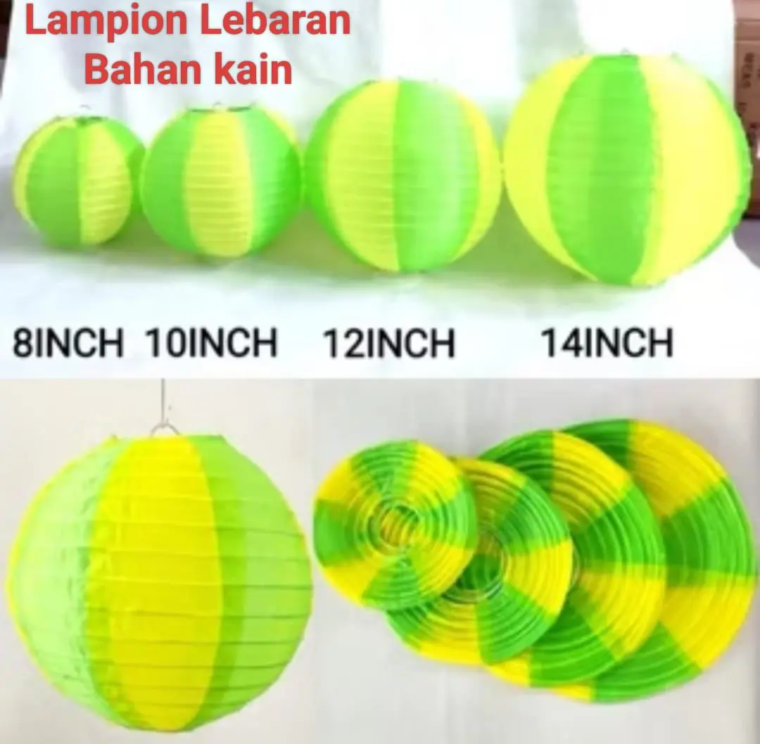• LAMPION BOLA GANTUNG KAIN HARI RAYA DIAMETER 14 INCH, DECORASI MENARIK UNTUK LEBARAN