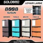 LEMARI BAJU PLASTIK 3 SUSUN TWIN KACA TEMPEL GOLDBRO UKURAN KOMPAK 50X70X155 CM