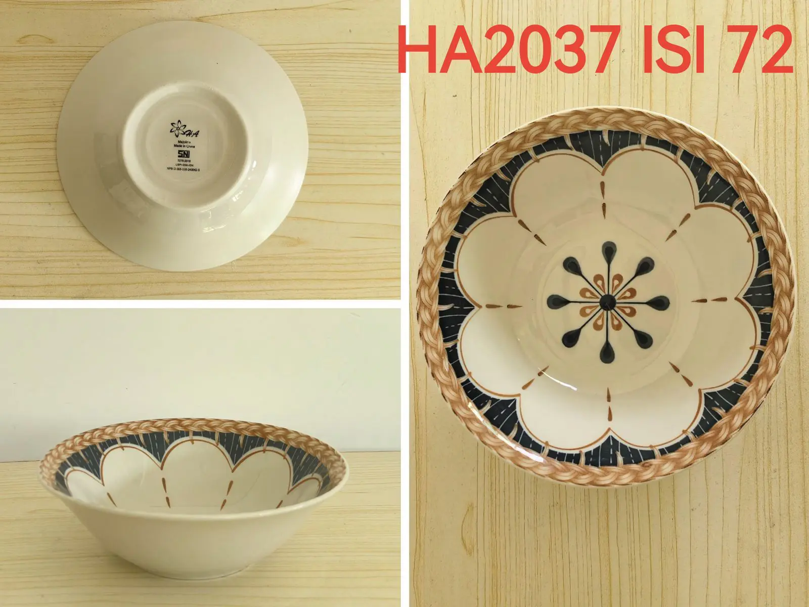 MANGKOK PORSELEN HA UKURAN 18 CM DENGAN MOTIF BATIK DAN PUTIH POLOS