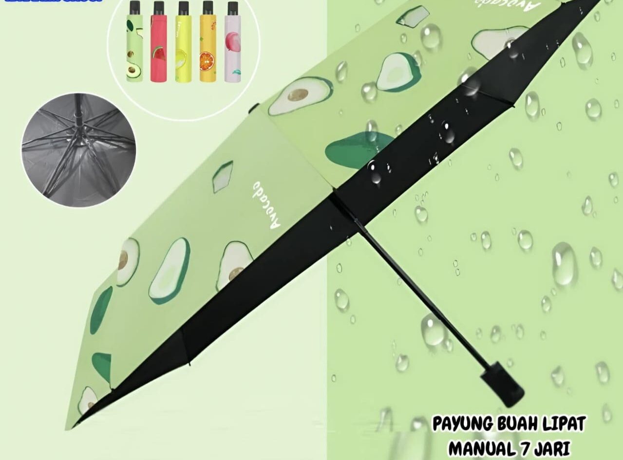• PAYUNG LIPAT MOTIF BUAH FRUITS DENGAN SARUNG PRAKTIS, DESAIN MENARIK DAN PORTABEL