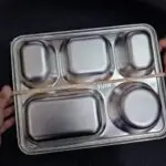 PIRING MAKAN SEKAT STAINLESS 5 IN 1 PRAKTIS TANPA TUTUP, COCOC UNTUK SEGALA HIDANGAN