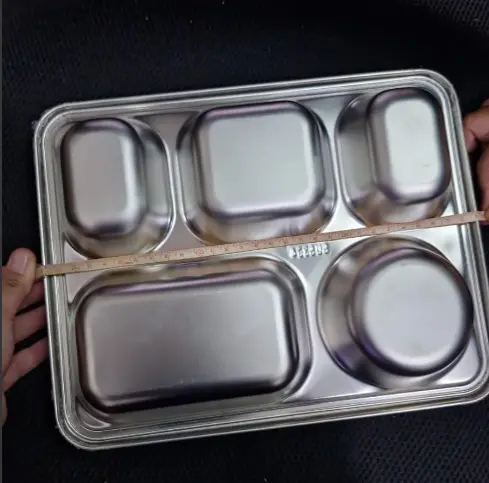 Nikmati kepraktisan dalam setiap sajian dengan piring makan sekat ini. Dengan 4 kotak dan 1 bulat, piring ini ideal untuk menyajikan berbagai jenis makanan sekaligus. Terbuat dari stainless steel, tahan lama dan mudah dibersihkan. Desain inovatif ini membuat makan lebih teratur dan menarik, sempurna untuk keluarga atau acara spesial!