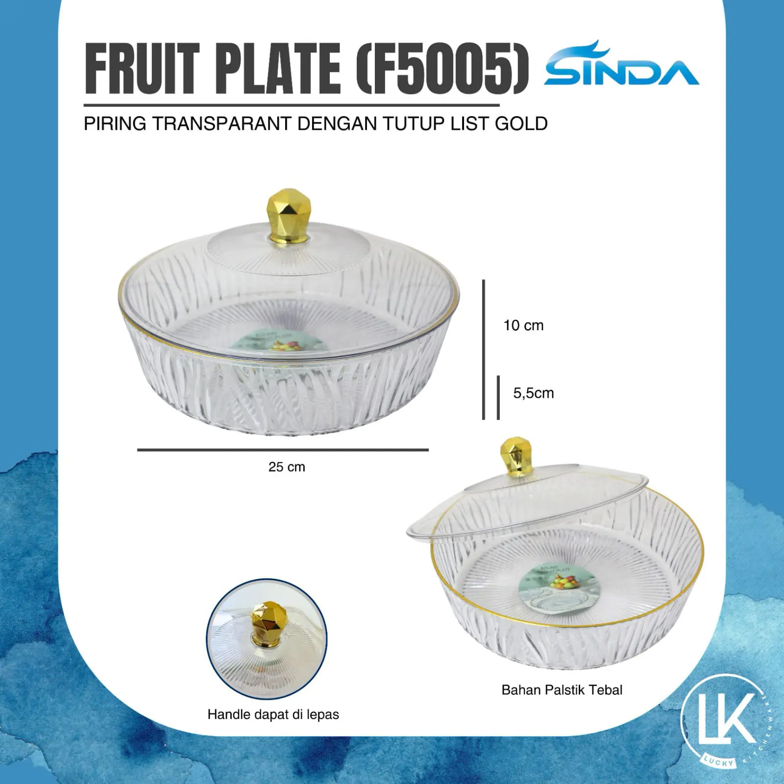 Hadirkan sentuhan elegan dalam penyajian buah Anda dengan piring wadah ini. Terbuat dari plastik transparan berkualitas, dilengkapi pegangan dan tutup berwarna gold yang glamour. Ukuran 25 x 25 x 10 cm ideal untuk menyimpan dan menyajikan berbagai jenis buah segar. Perfect untuk acara spesial atau penggunaan sehari-hari!