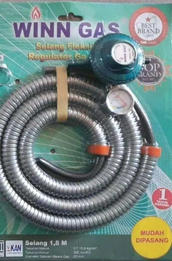 selang paket dan regulator win gas w-399 1.8 m diameter 20 mm, aman dan berkualitas