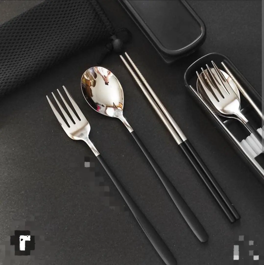 • SET SENDOK GARPU SUMPIT STAINLESS KOREA DENGAN WADAH HITAM MODERN DAN PRAKTIS