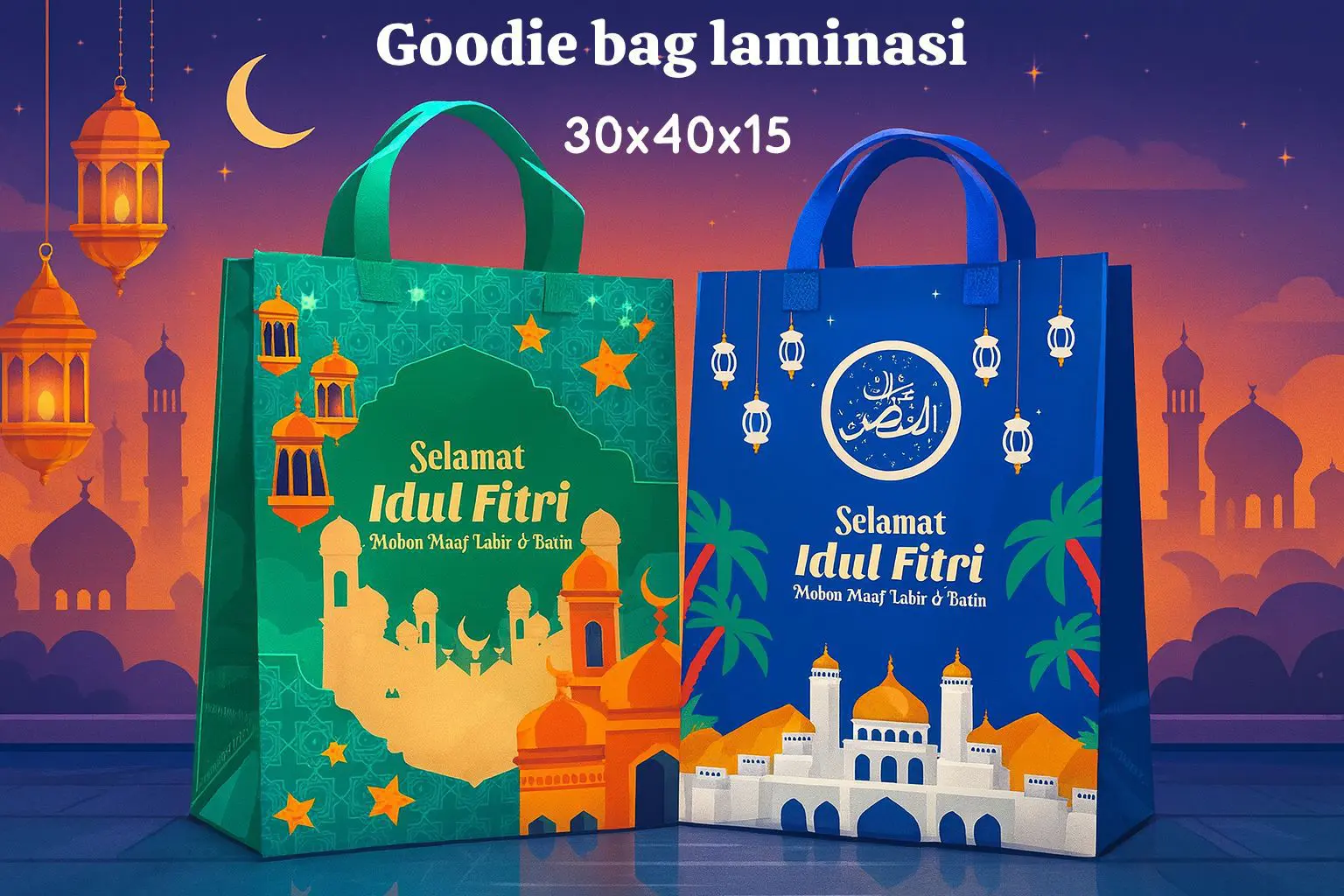TAS GOODIE BAG PLASTIK LAMINASI LEBARAN 30X40X15 CM RAMAH LINGKUNGAN SELAMAT IDUL FITRI