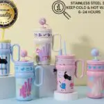 TERMOS TUMBLER ANAK 540 ML DENGAN MOTIF KARAKTER, SEDOTAN LEPAS DAN HANDLE SAMPING