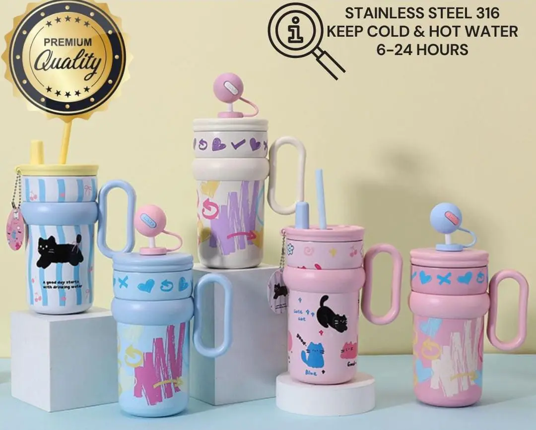 • TERMOS TUMBLER ANAK 540 ML DENGAN MOTIF KARAKTER, SEDOTAN LEPAS DAN HANDLE SAMPING