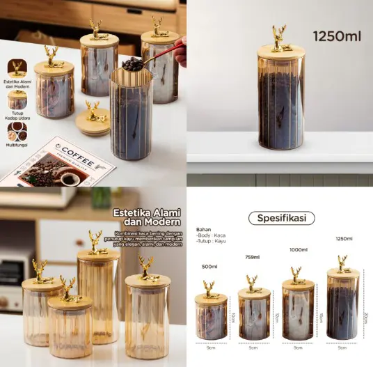 Simpan bumbu atau camilan kesukaan Anda dengan toples kaca cantik ini. Desain motif garis vertikal dan tutup kayu karakter rusa menambah sentuhan estetika pada dapur Anda. Dengan kapasitas 1250 ml, toples ini ideal untuk menyimpan berbagai bahan masakan. Transparan 80% memudahkan Anda melihat isinya sekaligus mempercantik ruang. Praktis dan bergaya!