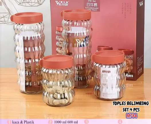 • TOPLES KACA SET 4 IN 1 TOPLES BELIMBING DENGAN TUTUP PLASTIK PRAKTIS