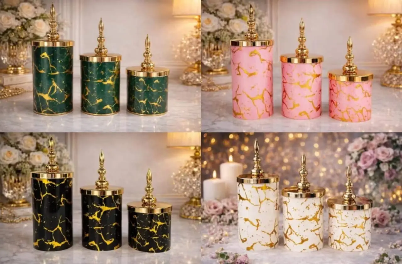 Sajikan keceriaan Lebaran dengan set toples plastik elegan berdesain marmer gold ini. Tersedia dalam tiga ukuran (500, 800, dan 1000 ml), toples ini bukan hanya fungsional untuk menyimpan kue kering, tetapi juga menambah estetika meja hidangan Anda. Tutup gold yang stylish dan pegangan gagang pedang panjang memudahkan Anda dalam menyajikan. Dapatkan sekarang untuk mempercantik momen spesial Anda!